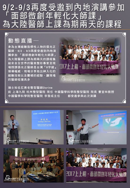 2017/09/02-09/03再度受邀到內地演講參加 「面部微創年輕化大師課」 為大陸醫師上課為期兩天的課程