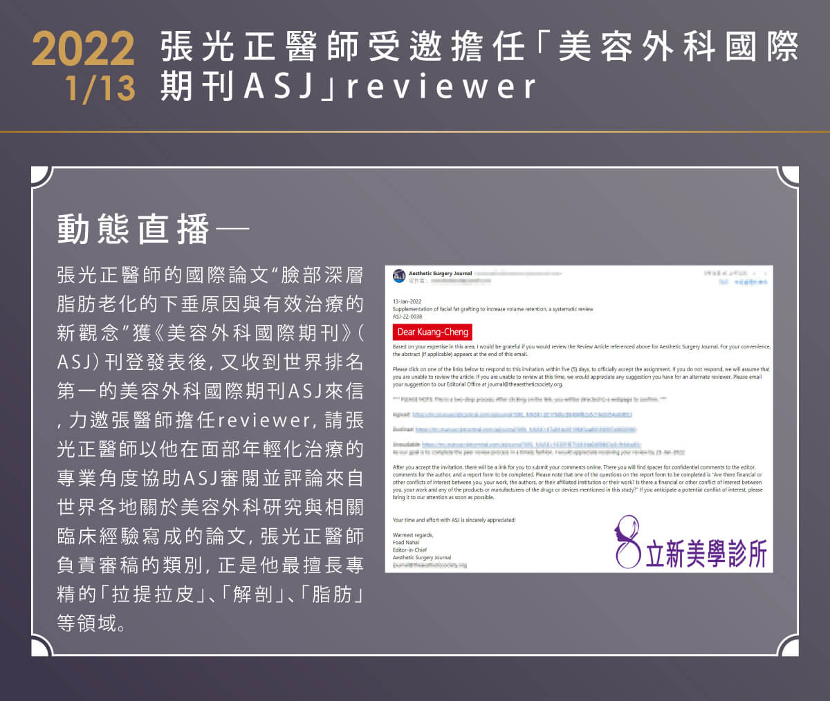 张光正医师受邀担任「美容外科国际期刊ASJ」reviewer