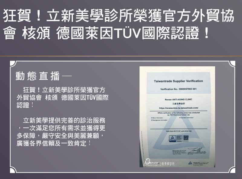 狂贺!真美学诊所荣获官方外贸协会 核颁 德国莱因TÜV国际认证!