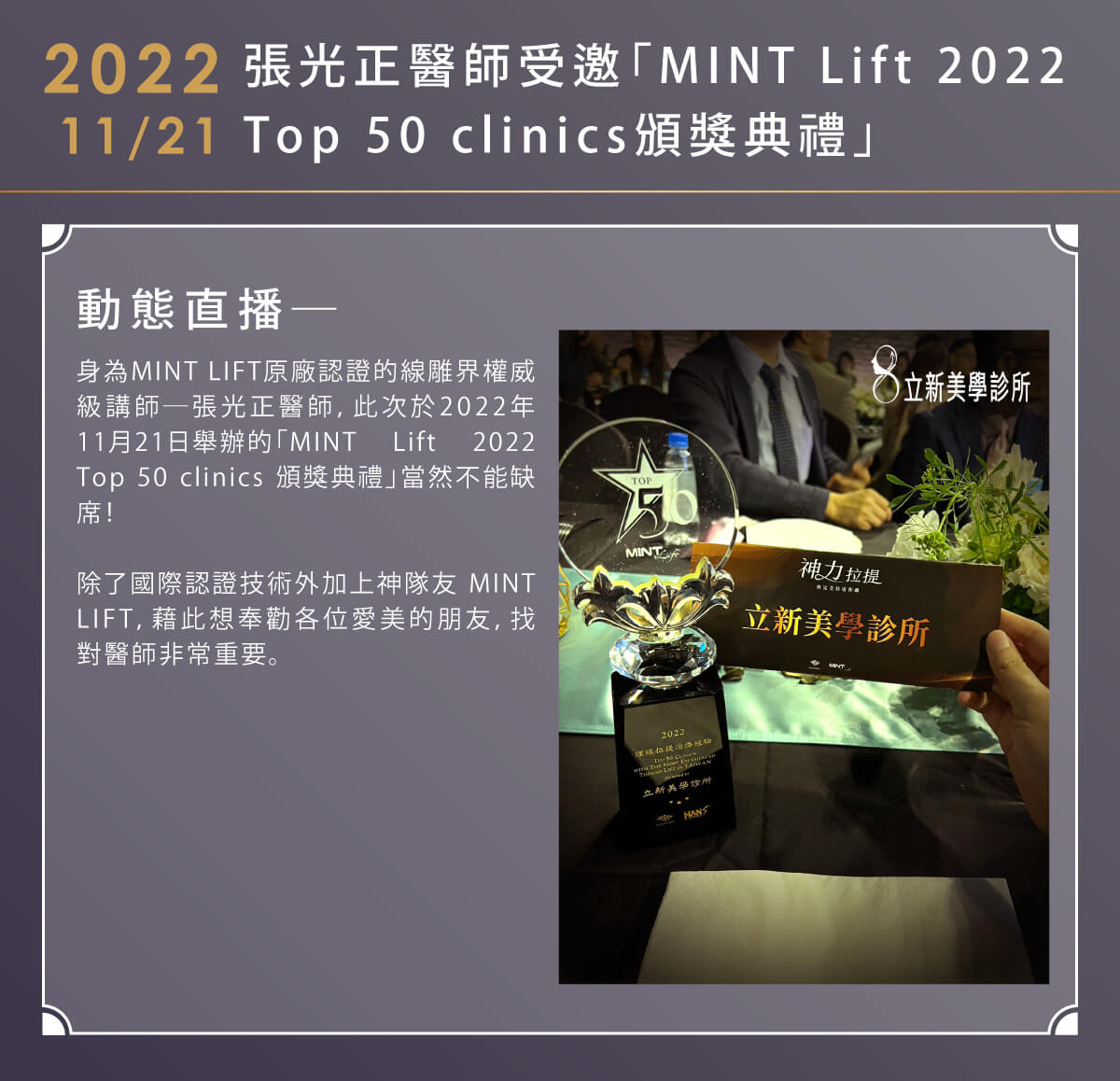 《MINT Lift 2022 Top 50 clinics 》颁奖典礼