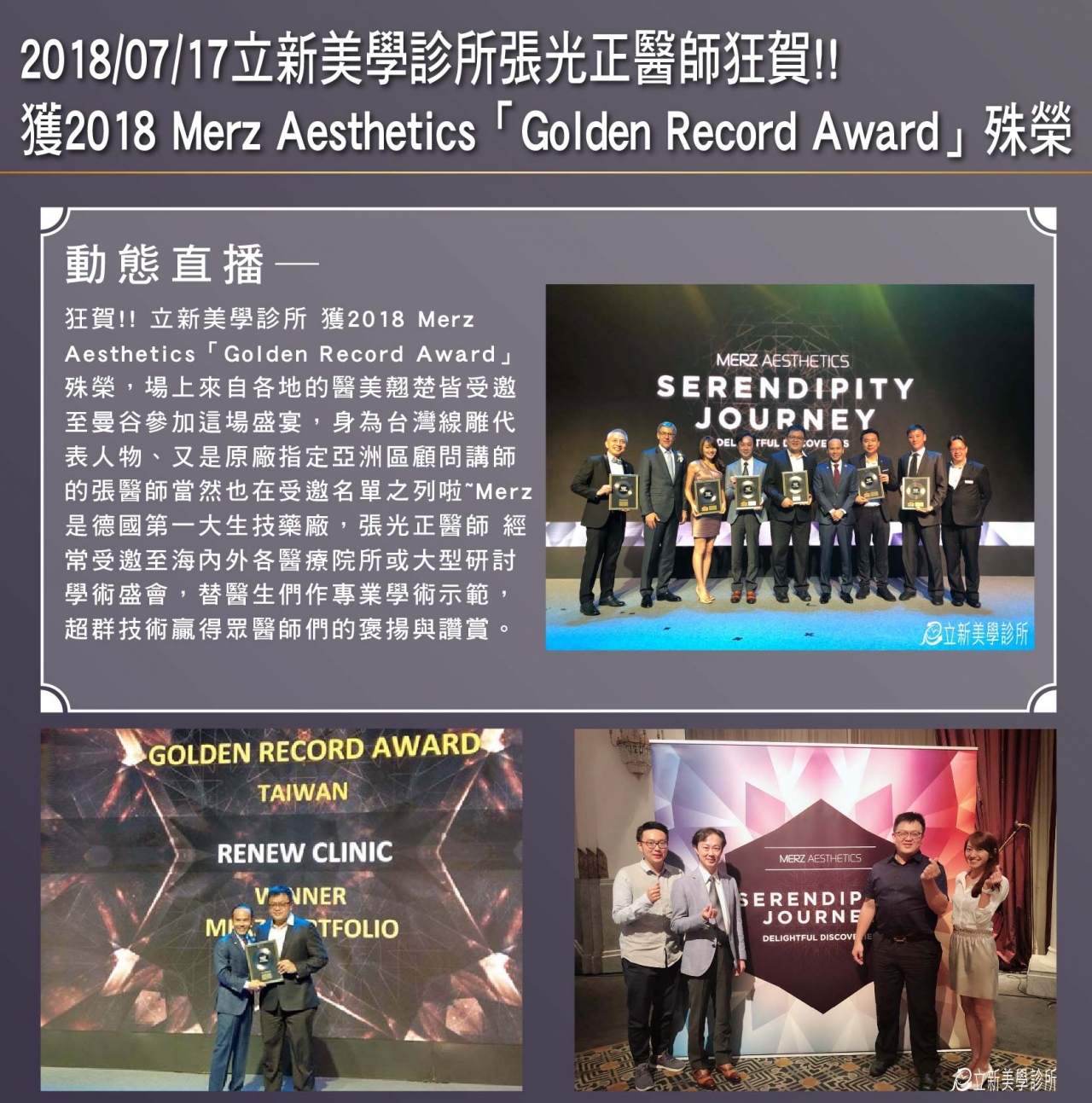 2018/07/17 真美学诊所张光正医师狂贺!获2018 Merz Aesthetics [ Golden Record Award ]