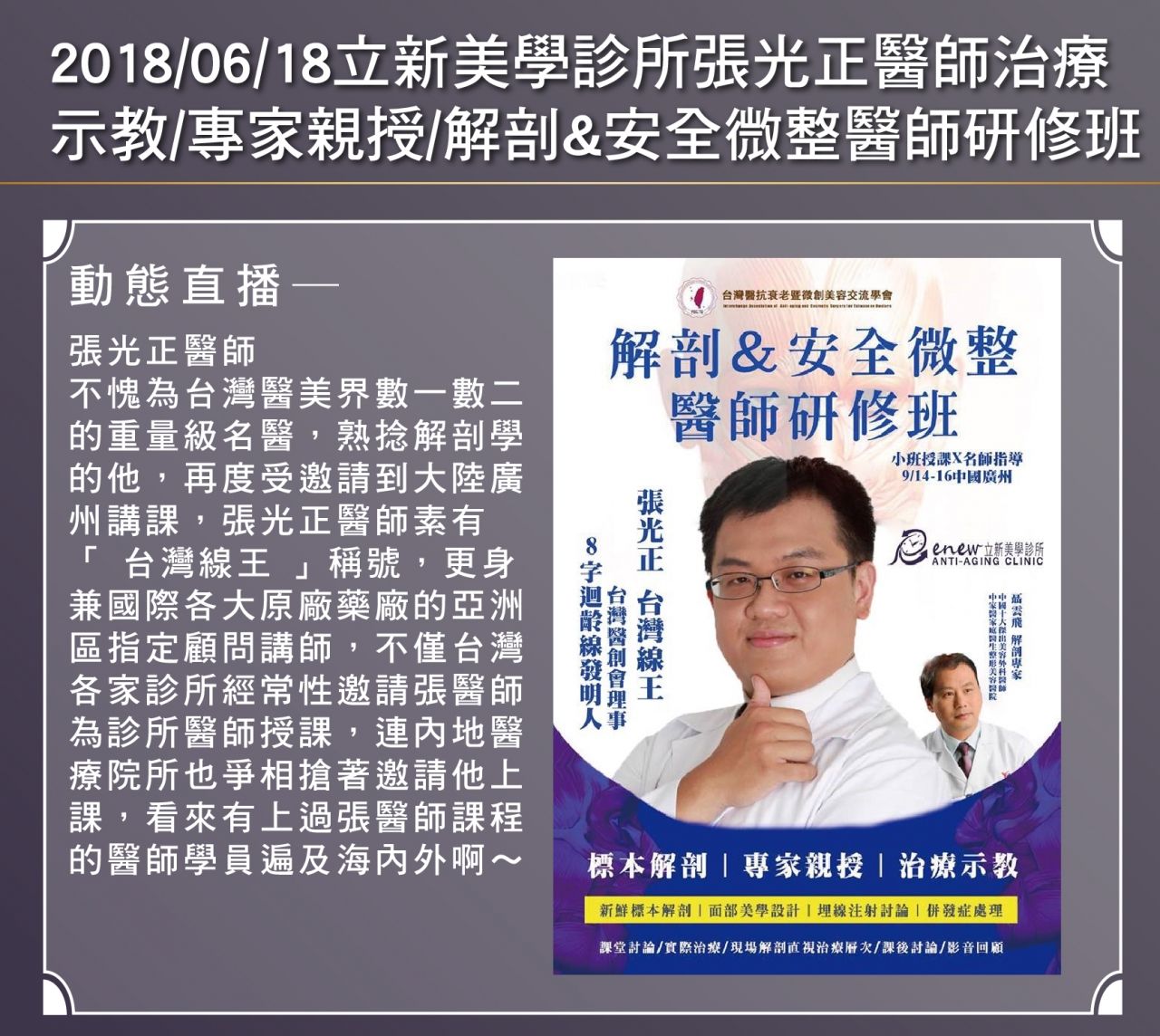 真美学诊所张光正医师治疗 示教/专家亲授/解剖&安全微整医师研修班