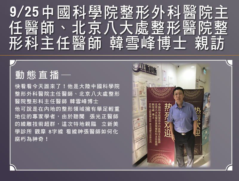 2017/09/25中国科学院整形外科医院主 任医师、北京八大处整形医院整 形科主任医师 韩雪峰博士 亲访