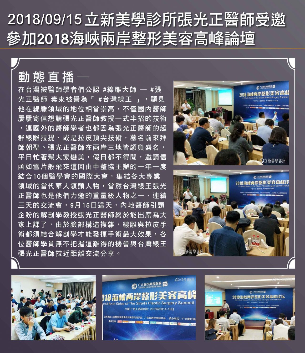 2018/09/15 真美学诊所张光正医师受邀 参加2018海峡两岸整形美容高峰论坛