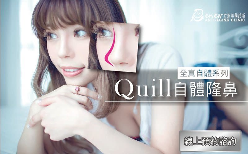 本网站内文中所提及的Q鼻、Q下巴、Quill自体隆鼻、Quill自体下巴,为闢明该疗程 的取用材料与施术部位的简称。 |