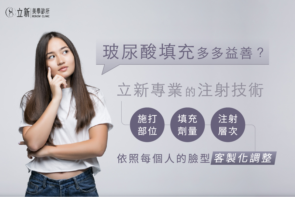 新世代且细腻的医美产品也须搭配专业、高明的医术才能好好发挥作用。玻尿酸填充注射,应该摆脱多多益善的错误观念,施打部位、填充剂量以及注射层次,都应该要详细评估、且依照每个人的脸型比例来设计和调整。例如:支撑性较高的玻尿酸应该施打在深层脂肪组织,打好基础;再以延展性较高的玻尿酸施打于浅层脂肪,做到细部修饰。