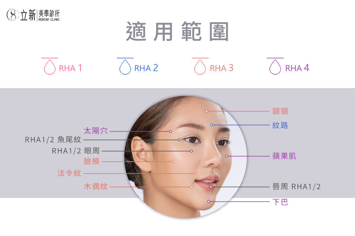 RHA 1 泰奥媞润 特点:伸延性最高,适用于均匀填充浅层细纹,可维持长达12个月。