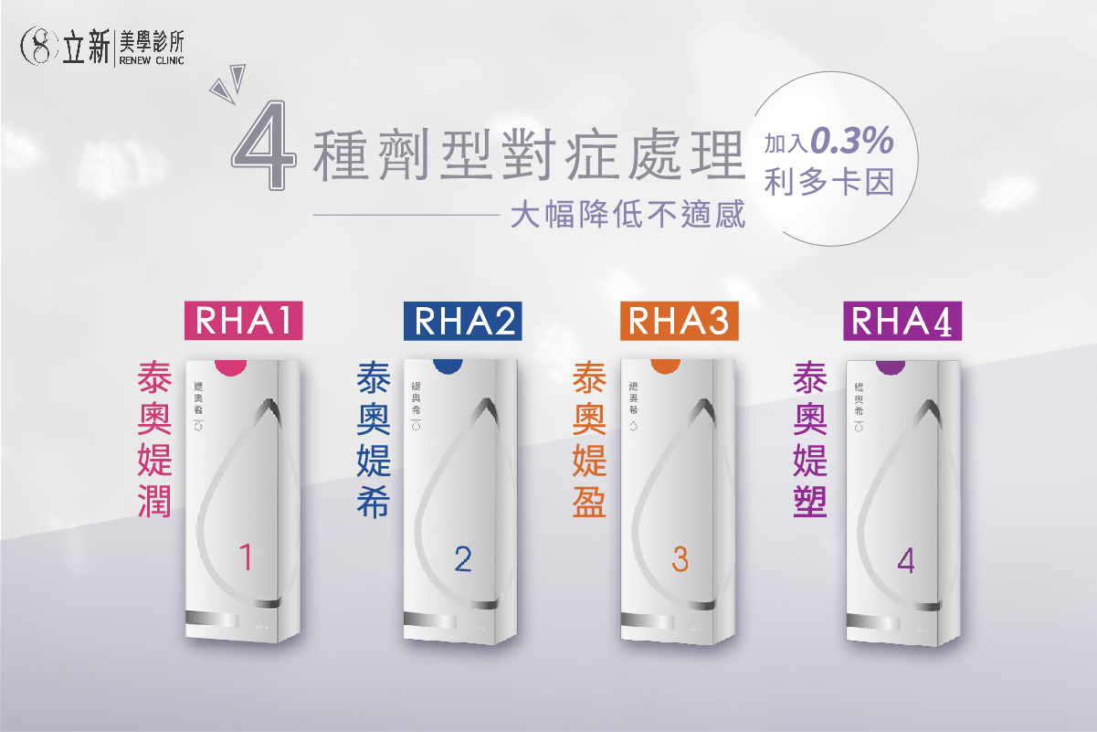 RHA 4 泰奥媞塑 特点:支撑性最高,适用于重塑脸部轮廓、增加丰盈度,有效改善深度皱纹及凹陷问题,丰盈 及塑造轮廓,可维持长达22个月。
