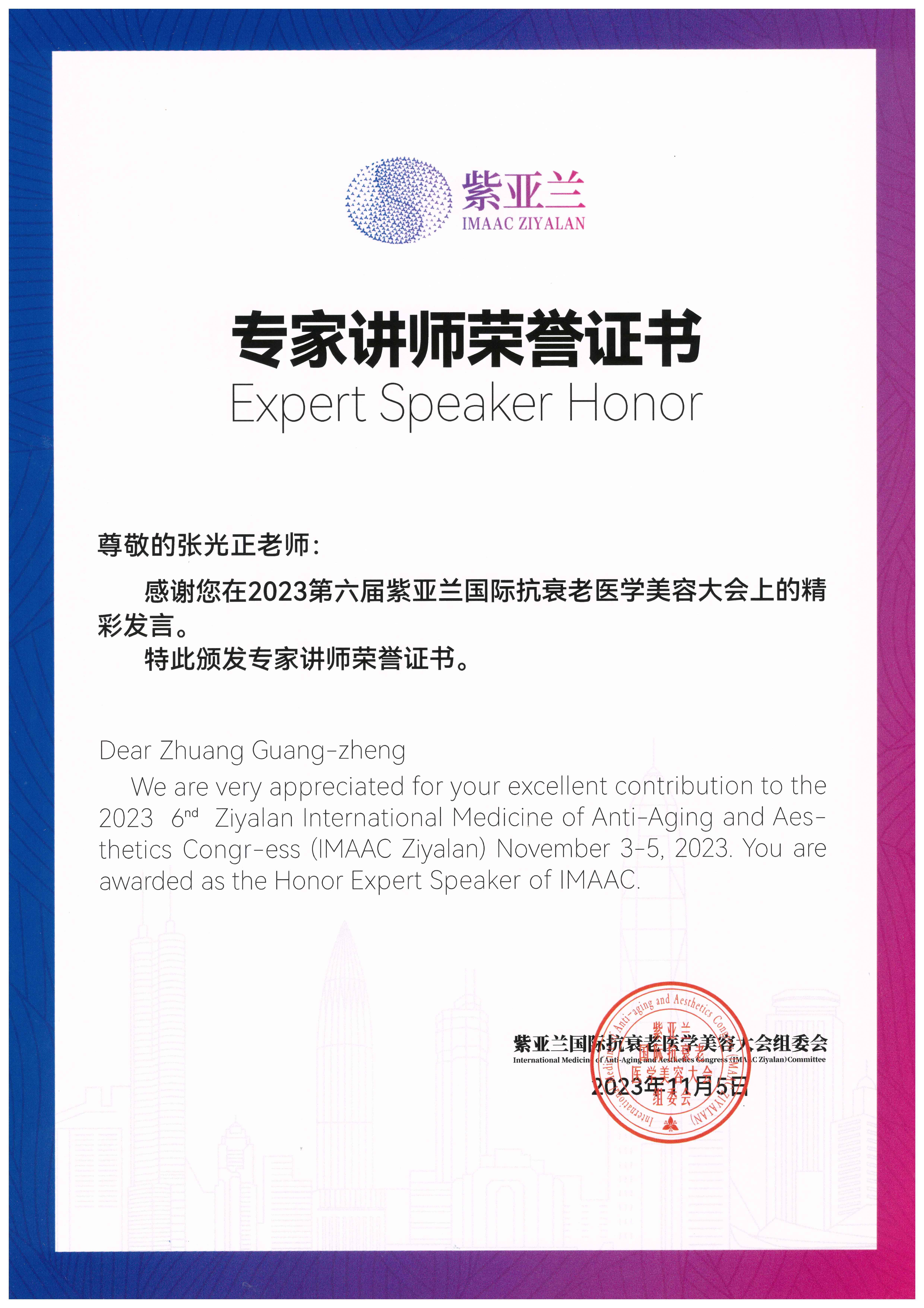 巴黎整形会议面部解剖的台借医生;印度解剖交流会─授课讲师;北京颜面部年轻化解剖研习会、台湾北医、阳明医科大学、台大、中山医学大学、北荣、北京解剖学会、大连解剖学会、上海复旦大学,是国际公认的面部解剖学权威,面部解剖教学最多的医师。