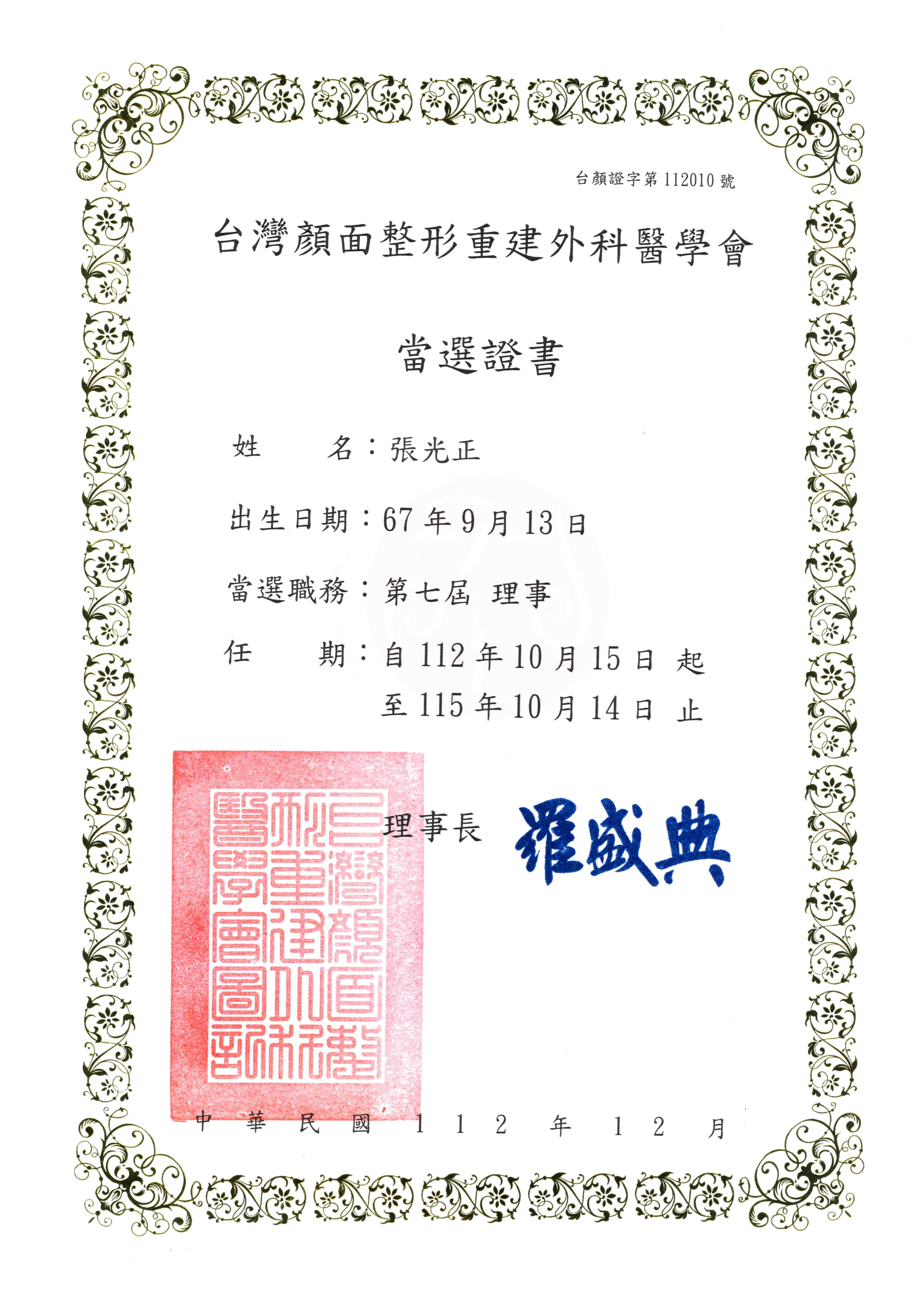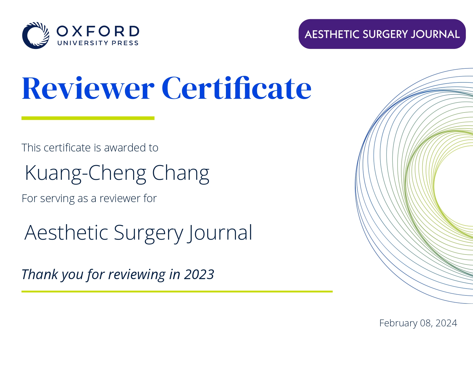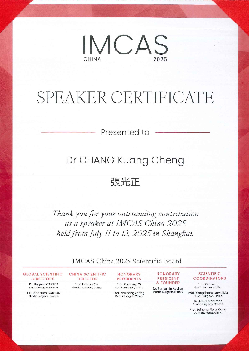 Extended deep plane rhytedectomy with minimal incision;BBF义大利世界拉皮大会;韩国颜面整形重建外科国际演讨会─授课讲师;各大医学会三层次拉皮演示暨教学;医美大师的淬链者拉皮讲座上额内视镜拉皮─座长;医学会颈部赫本耳后双向拉─深层脂肪转位下巴。